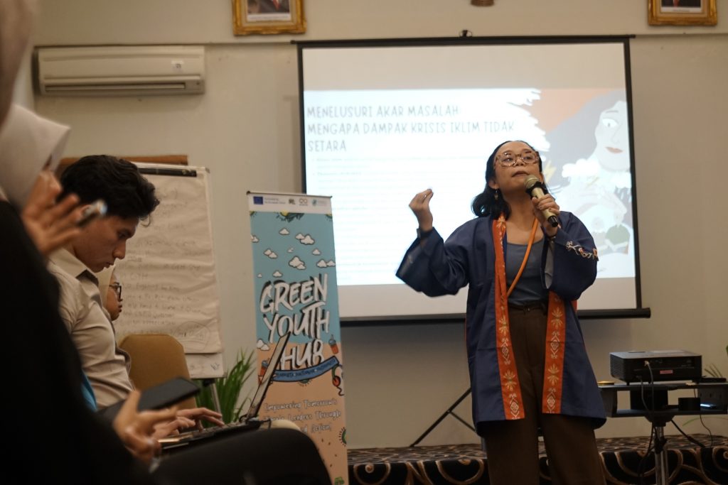 The day featured two expert speaker sessions. A speaker from WALHI shared insights on environmental advocacy, detailing the successful grassroots campaign and legal actions, and from the Humanis Foundation introduced the concept of the climate crisis as a “care crisis”, explaining how systemic power imbalances and the undervaluation of care work, often performed by women, worsen environmental injustice and advocated for human rights-based and intersectional approaches to climate action.